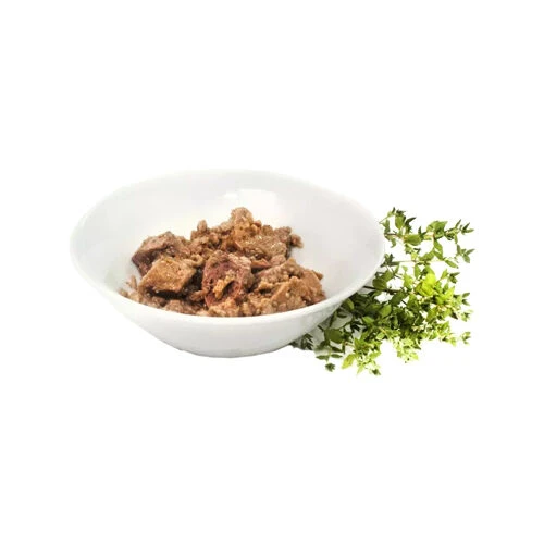 Het voer komt in blik en heeft een zachte structuur.