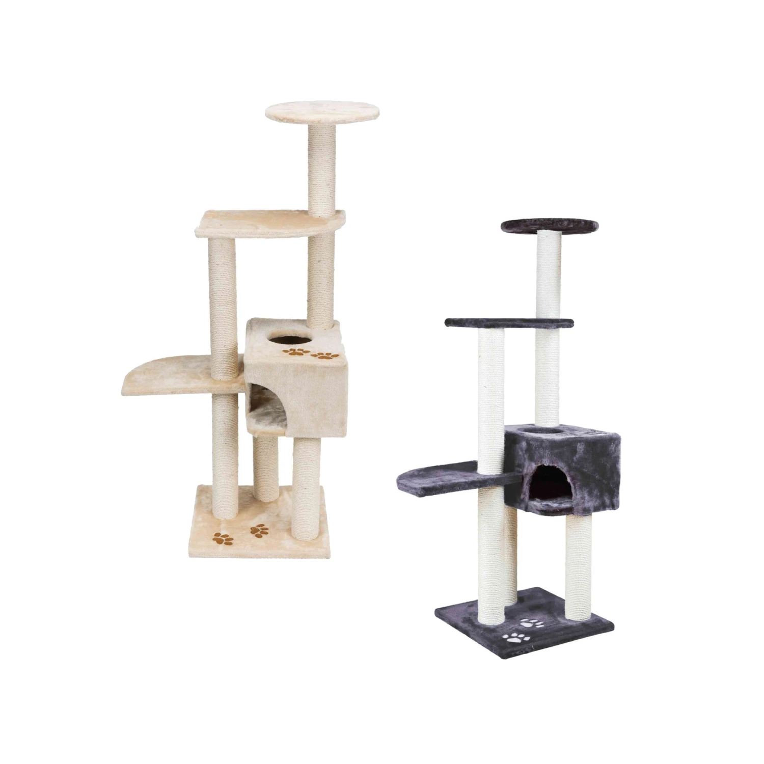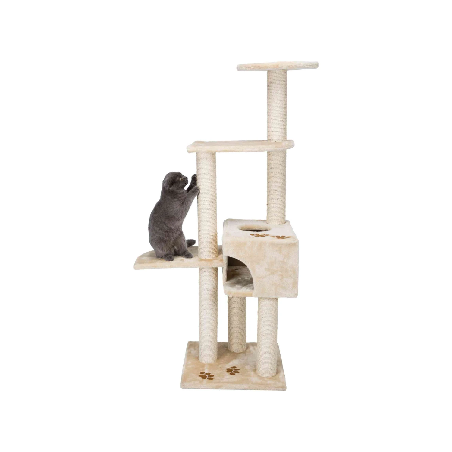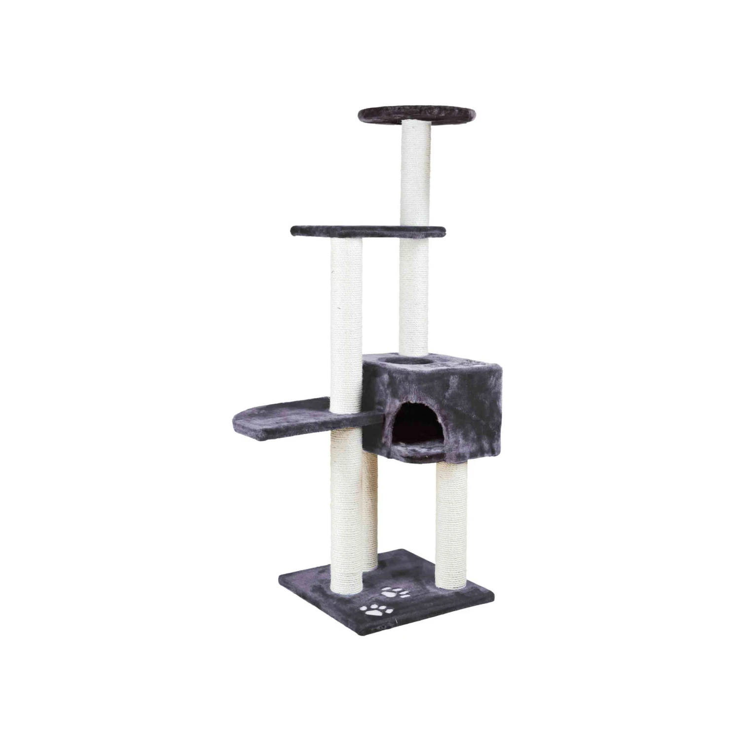 Speciaal voor katten is er Krabpaal Alicante van Trixie. Dit grote kattenmeubel heeft meerdere plateaus en zelfs een schuilplaats. Door de pluche bekleding, wordt dit vast en zeker het comfortabelste rustplekje van uw kat. De stammen zijn voorzien van natuursisal, zodat het perfect is om de nagels aan te krabben. De krabpaal is versierd met pootafdrukjes.